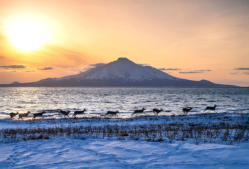 1席の「夕暮の雪原を走る」は、何というドラマだろう。空が朱に染まりはじめ、全容を現す冬の利尻山が銀波に浮かぶ絵のような風景のなか、エゾシカが群れで青い雪原を駆け抜けた。作者はその幸運を逃さず秀作として記録したことが素晴らしい。これぞ自然写真の醍醐味である。