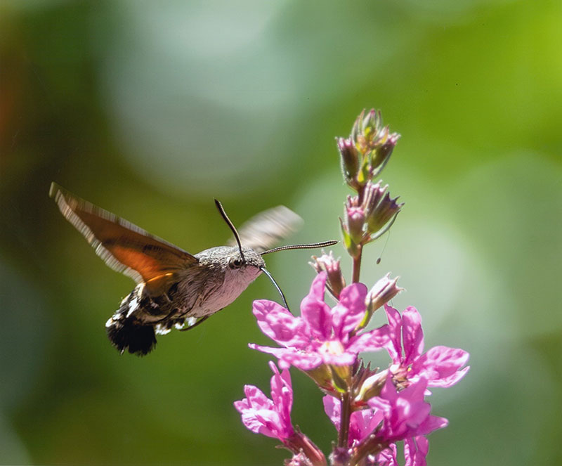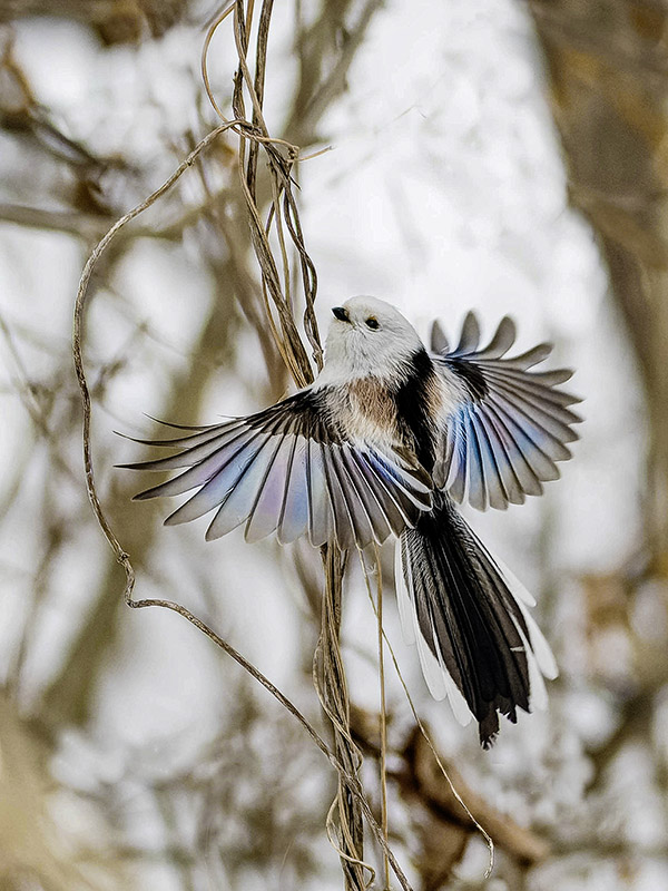 3席の「朝日を浴びる白鳥」は、手前から奥へ多数が連なるオオハクチョウ、低い太陽がつくる影に目が留まる。広角レンズによる撮影が功を奏した。「にぎわう森の定食屋さん」は、パッと華やいだミドリヒョウモンなどの蝶が目を引いた。蝶のオレンジ色を周囲の色彩が引き立て、バランスよく切り取ることができた。「虹色の羽」は、シマエナガの羽ばたきを、翼を広げたタイミングでピタリと止めて切り取った。羽の先端の一枚一枚まで鮮明で美しい。