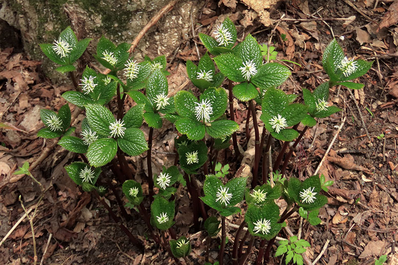 鮫島和子賞の「静溢」は、次々に頭をもたげ、一塊に開花するヒトリシズカを捉えた作品である。斜め上からの光が花茎を黒く塗りつぶし、葉の中央に開花する花々にスポットライトを当てている。上から左下に流れる枯れ枝が画面に変化をもたらした。