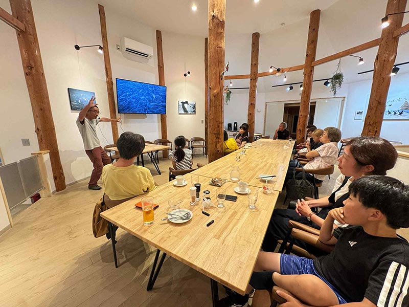 由仁町教育委員会からの要請で、同町の健康元気づくり館において、高齢者大学「アカデメイア・ユニ」在学生を対象として開催しました。同学の今年の学習テーマである「空知」を学ぶ一環で、隣町の長沼町について学んでもらっています。長沼町は、特別天然記念物のタンチョウが生息しており、同町の自然も含めて知識を深めてもらいました。講師は、道内の野鳥に詳しい環境市民団体・エコネットワークの小川巌さんで、タンチョウのお話しから小川さんが主宰するエコネットワークの活動まで幅広く紹介してもらいました。